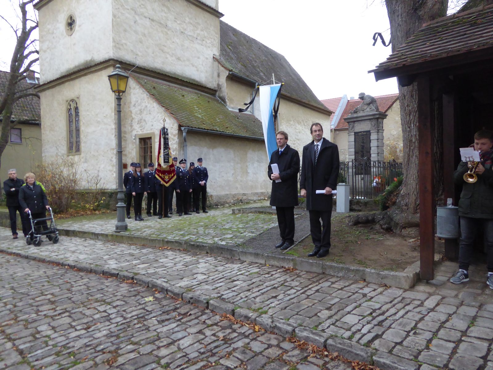 Erlach. Zum Gedenken an die Toten der beiden Weltkriege versammelten sich über 50 Bürger/-innen aus Erlach am Kriegerdenkmal. „Der Volkstrauertag macht uns erneut bewusst, welche Geschichte uns geprägt hat“, so Ortssprecher Tilo Hemmert in seiner Begrüßung.