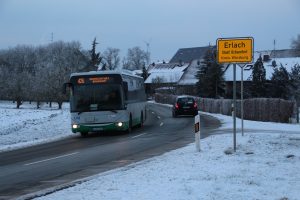 - die Linien 426 und 555 so zu gestalten, dass für Fahrgäste aus Erlach früh ein sicherer Anschluss in Frickenhausen an den Bus Richtung Marktbreit gewährleistet ist, d.h. konkret entweder den Bus 426 in Erlach 5 min früher abfahren zu lassen (6.55 Uhr) oder in Frickenhausen mit der Linie 555 erst um 7.15 Uhr zu starten, so dass in Frickenhausen eine Umsteigezeit von 5 Minuten leichte Verspätungen des ersten Buses kompensieren kann.