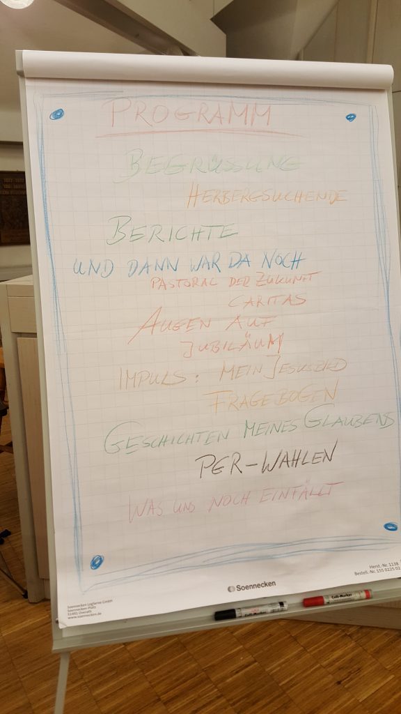 Erlach / Kaltensondheim. Die traditionellen Pfarrversammlung fand in diesem Jahr im Feuerwehrhaus in Kaltensondheim unter dem Motto: „Oh Gott! Wo bist du? Wo bleibe ich?“ statt. Bruno Schuster aus Kaltensondheim hatte gemeinsam mit Gaby Göb viele Impulse vorbereitet.